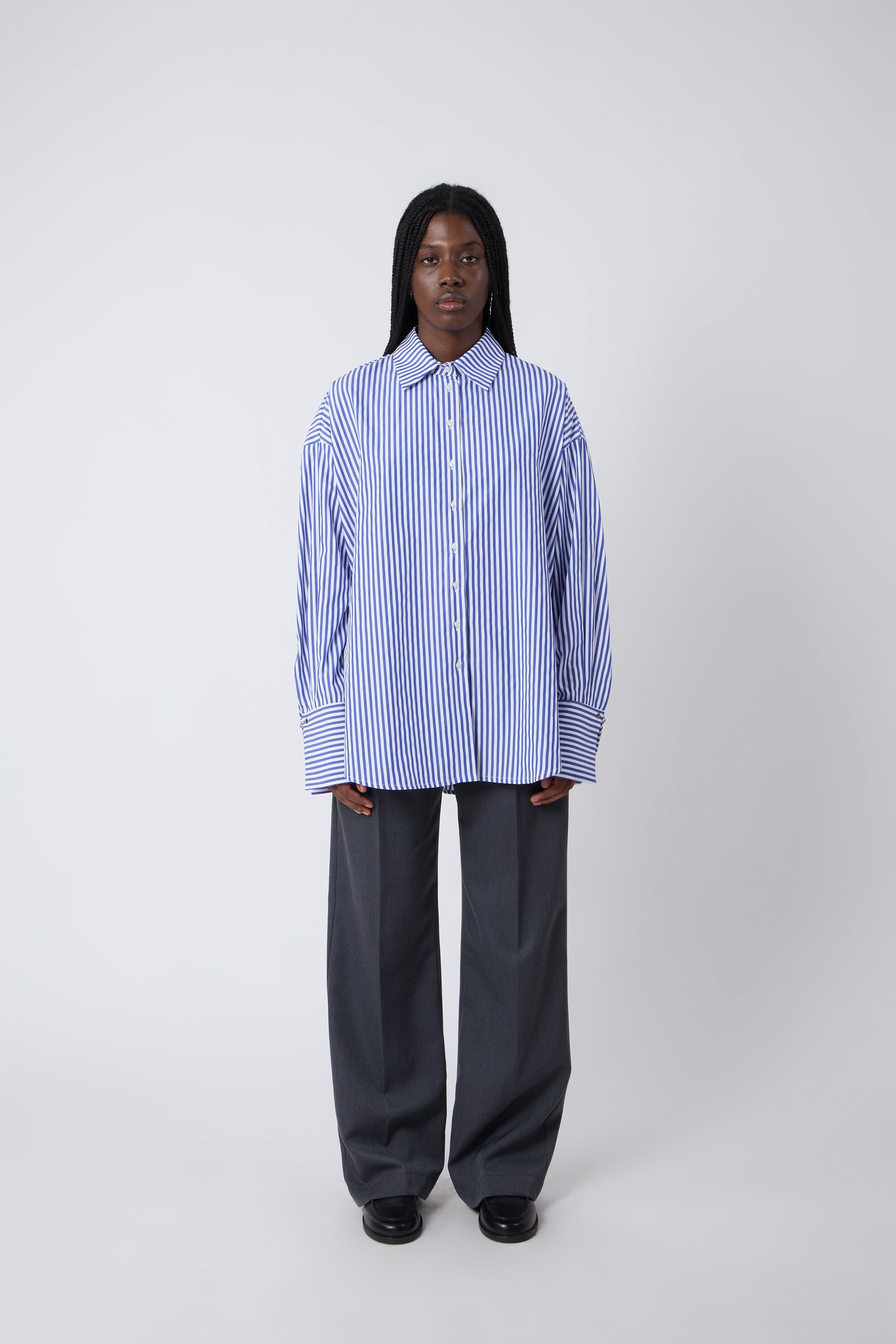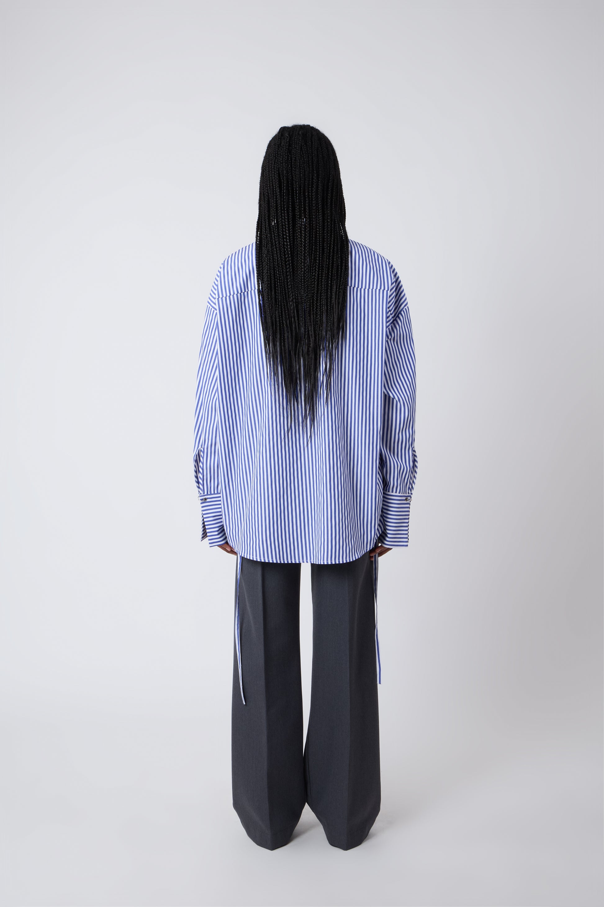A straight-cut shirt, light and comfortable in soft cotton, stands out for its distinctive details. The cuffs are adorned with elegant piercings, adding a touch of daring sophistication. Internally, the option of laces allows for personalized styling, offering versatility and originality to those wearing this unique garment.
