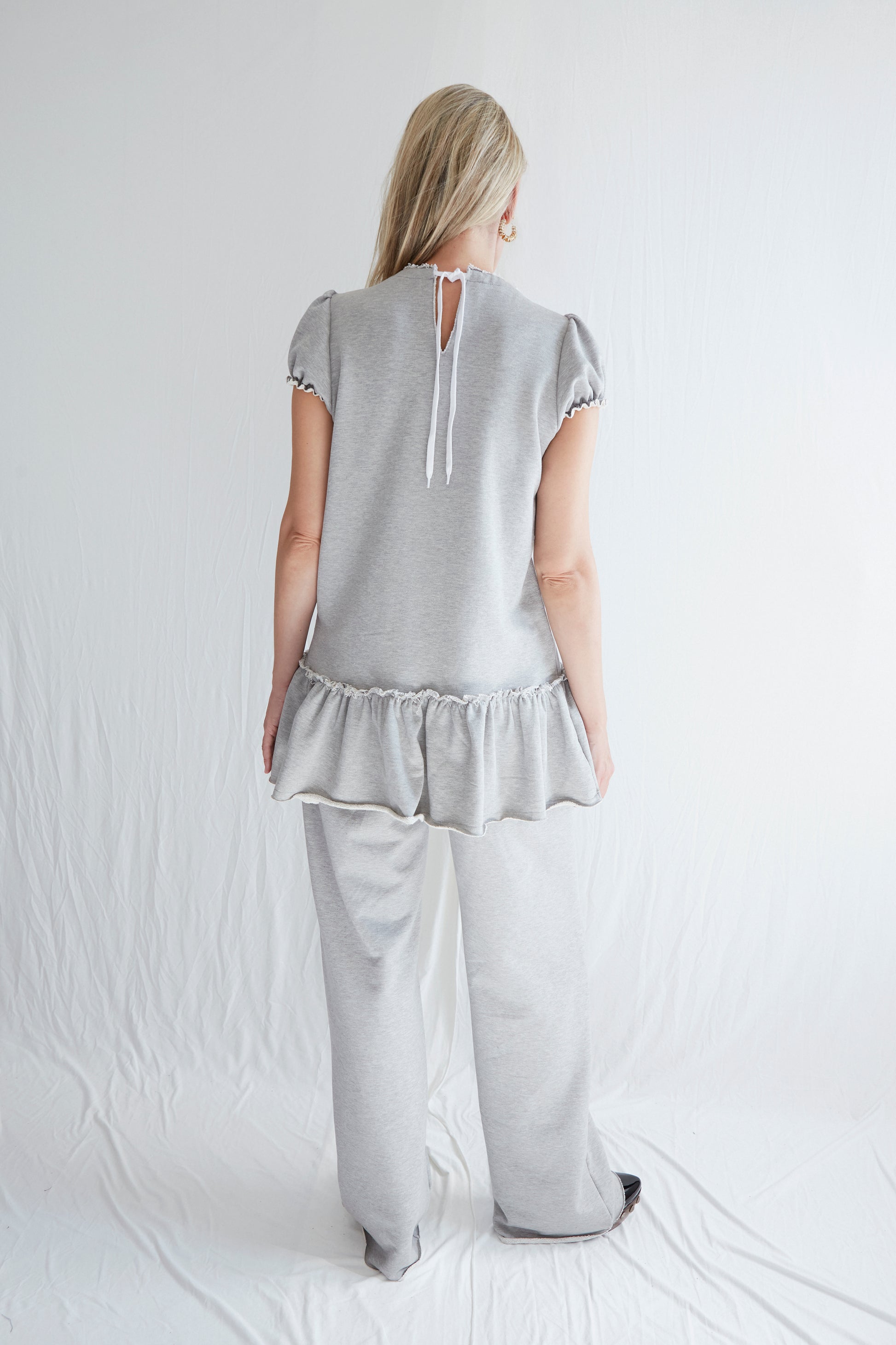 Sporty and romantic, with its mini skirt and puffed sleeves, the Bebe dress is cut from a rich jersey. The dress features a dropped-waist bodice paired with a short, gathered skirt, made to embody effortless cool. The dress closes with a delicate bow in the back.