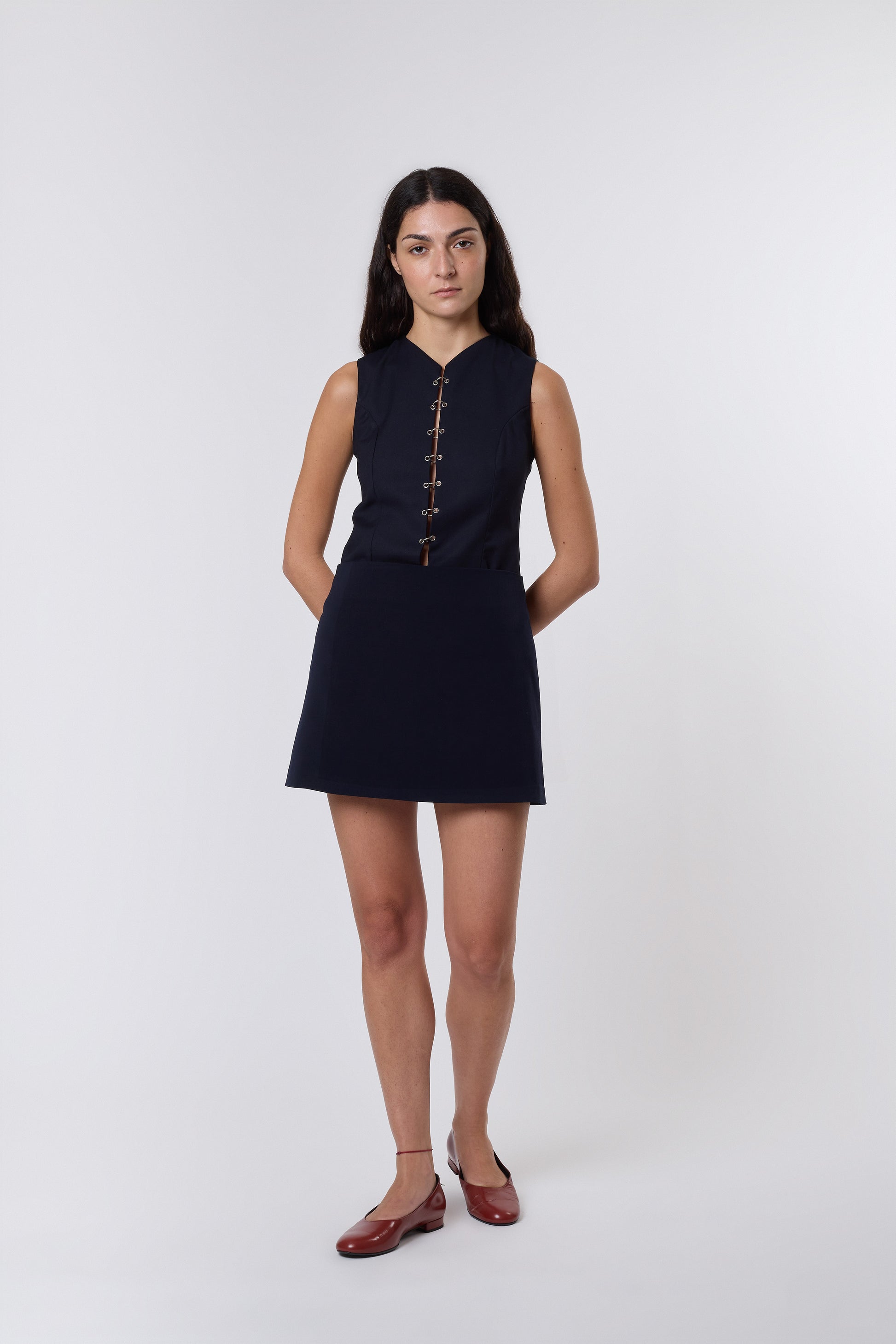 A trapeze silhouette and timeless elegance, the Lea miniskirt is made of deadstock cool wool. With a zip in the center back and a fully hand-stitched hem. Lea is designed with a regular fit and a mid-low rise waist.